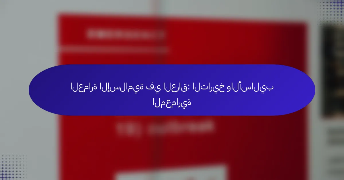 الثقافة والفنون العمارة الإسلامية في العراق: التاريخ والأساليب المعمارية Islamic architecture in Iraq is characterized by intricate artistic details and rich decorations, with its 03/07/202515/07/2025